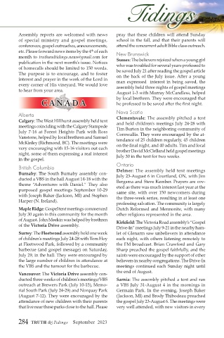 Burnaby: The South Burnaby assembly con- July 23-August 6 in Courtland, ON, with Jim