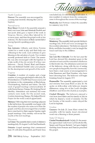 gospel, and they are encouraged that a number Guasave: On July 23, Jesse Klein visited the