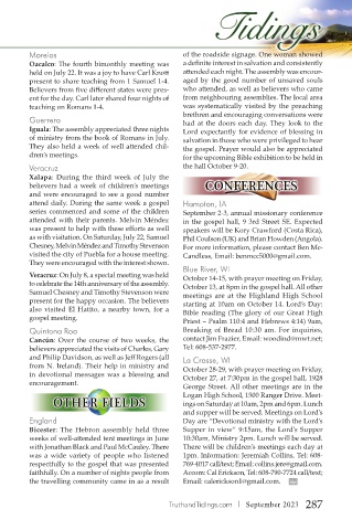 believers appreciated the visits of Charles, Gary Tel: 608-537-2977.