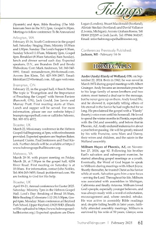 will be uploaded to https://www.hebrongospel- fully attended assembly meetings. Milburn is