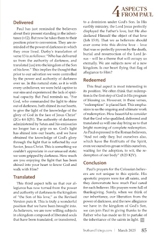 out of darkness, hath shined in our hearts, “redemption” is placed last. This empha-
