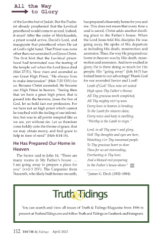 The first hint that the Levitical priest- home in heaven was by His death, resur-