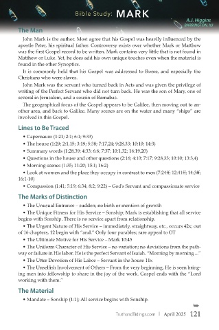 • Look at women and the place they occupy in contrast to men (7:24ff; 12:41ff; 14:3ff;