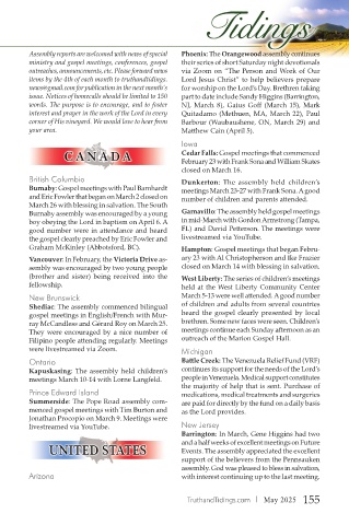 Burnaby: Gospel meetings with Paul Barnhardt meetings March 23-27 with Frank Sona. A good