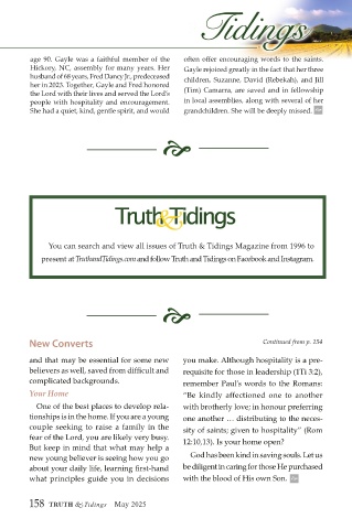 age 90. Gayle was a faithful member of the often offer encouraging words to the saints.