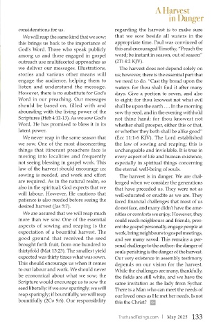 sowing is needed, and work and effort The harvest is in danger. We are chal-