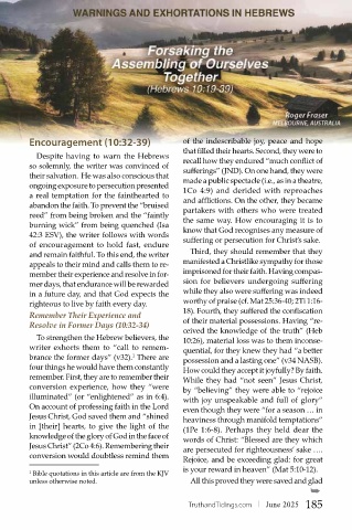 Encouragement (10:32-39) of the indescribable joy, peace and hope