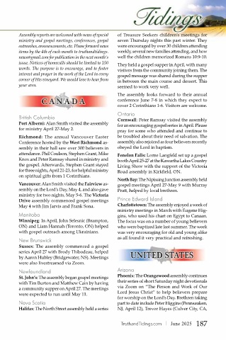 Assembly reports are welcomed with news of special of Treasure Seekers children’s meetings for