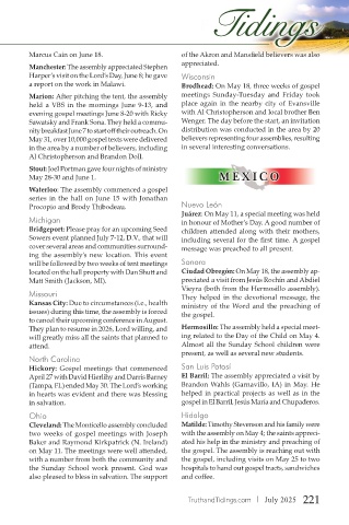 a report on the work in Malawi. Brodhead: On May 18, three weeks of gospel