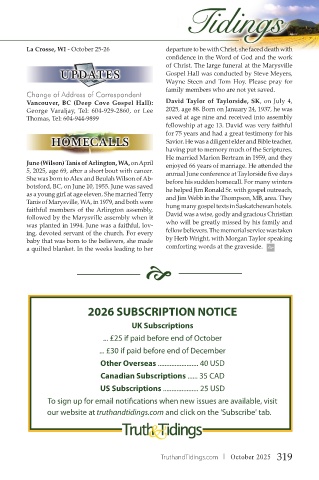 our website at truthandtidings.com and click on the 'Subscribe' tab.