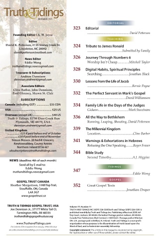 are online at www.truthandtidings.com in a searchable database. Copyright statement: The articles in this magazine are protected by copyright.