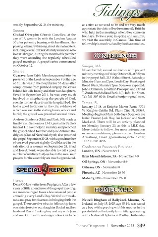 the gospel September 20-28, with a good number Armstrong, Email: gparmstrong@icloud.com;