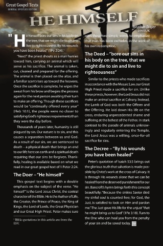 read in our great gospel text of 1 Peter 2:24. the glorious truth that salvation is made pos-