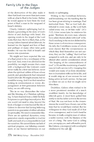 Clearly, Gideon’s upbringing had in- called every one, so let him walk” (1Co