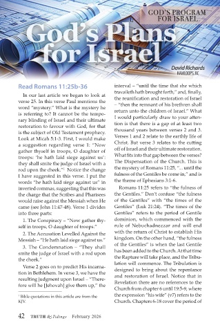 verse 25. In this verse Paul mentions the the reunification and restoration of Israel