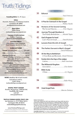 TRUTH & TIDINGS GOSPEL TRUST, USA Volume 78, Number 2