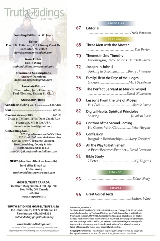 TRUTH & TIDINGS GOSPEL TRUST, USA Volume 78, Number 3