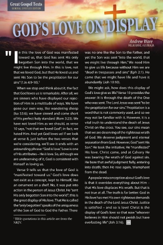 astounding phrase: “God is love.” Love is one Son.” He took the initiative; He “manifested”